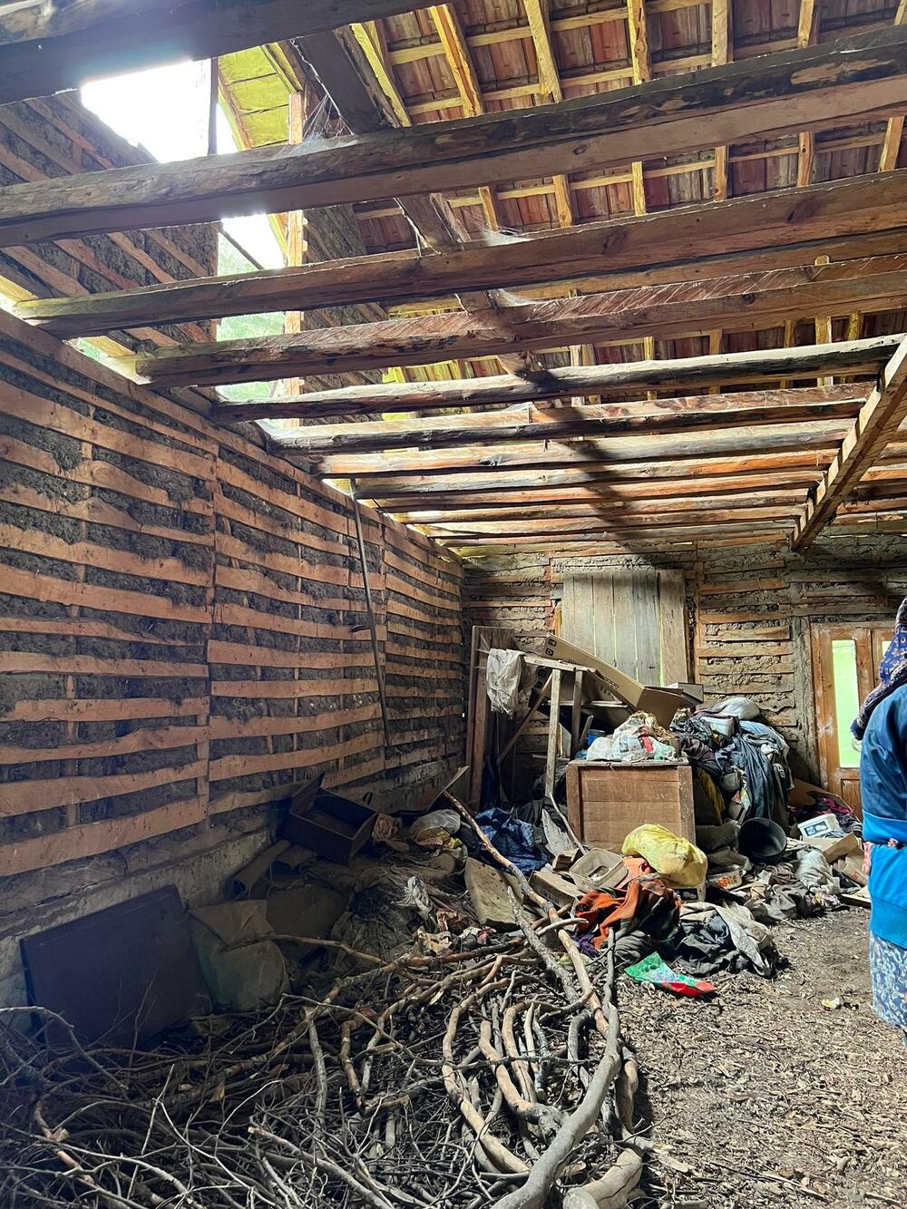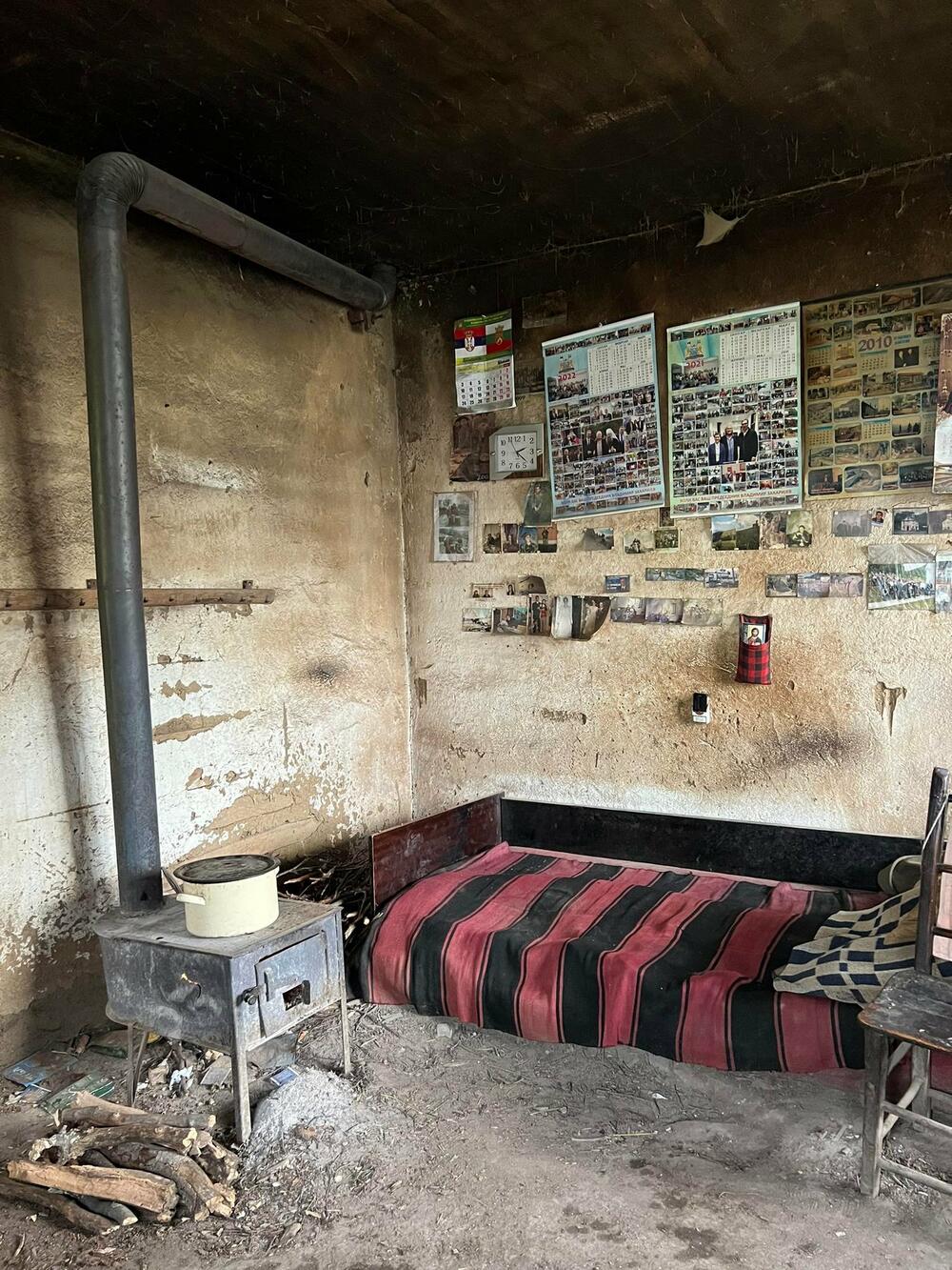Ни простор у ком живе ови људи није ништа бољи. Зидови црни, као и њихови животи, рупе на земљаном поду, распаднути кревети, из собе гледају у ведро небо, а зими им снег навеје просторије.